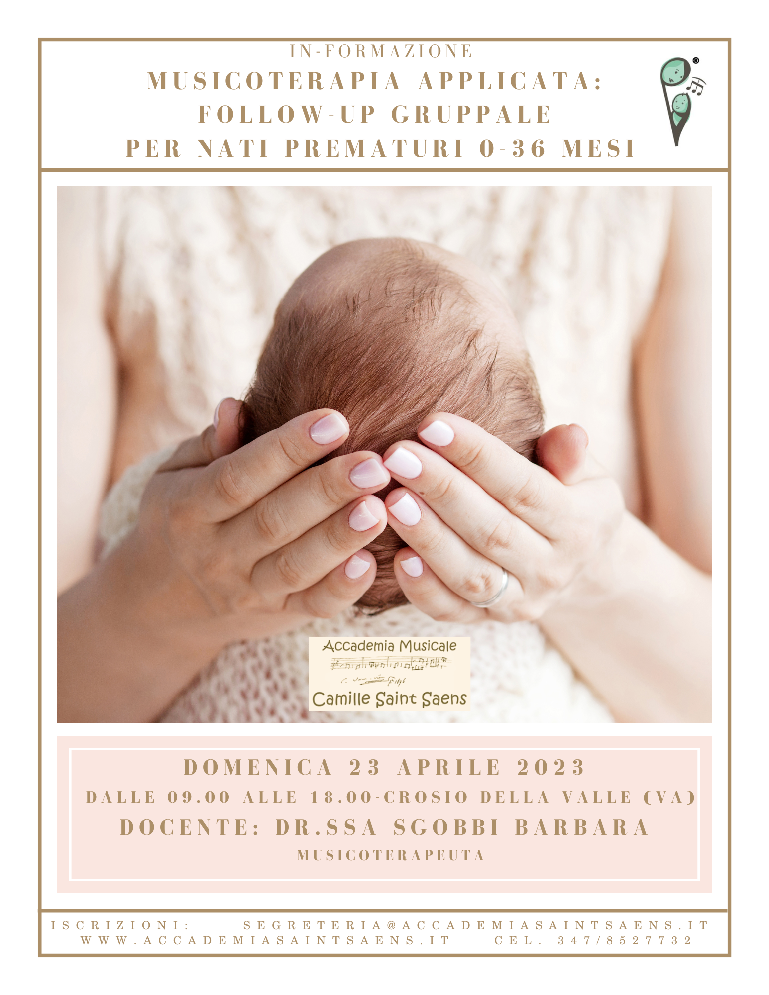 L’incontro si concentrerà sulla metodica ideata dalla prof. Barbara Sgobbi ” 1000 giorni di musicoterapia e altri 1000 ancora”, nonché sulle esigenze relazionali musicali inerenti allo sviluppo neuro-comportamentale del neonato prematuro e divulgherà inoltre strategie per differenti percorsi terapeutici inerenti alle necessità dei nati pretermine.